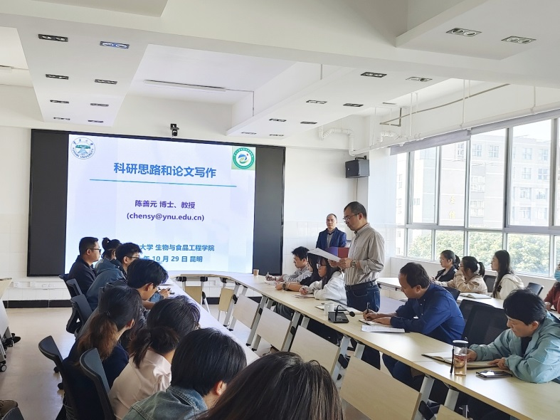 10月29日下午,云南大学陈善元教授受邀莅临生物与食品工程学院,在生物楼419会议室开展了以“科研思路和论文写作”为主题的学术讲座。讲座由学院院长罗旭教授主持,我院教师和研究生参加了此次讲座。陈善元教授围绕科研论文展开深入讲解。他首先剖析了撰写科研论文的重要意义,让在场师生明确了论文写作在科研道路上的关键作用。随后,针对“如何写论文”这一核心问题,陈教授结合具体案例,详细阐述了选题方法,为师生们在科研...
