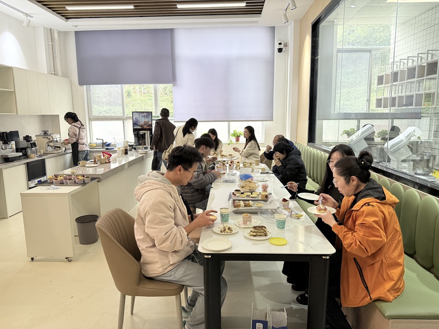 活动现场弥漫着浓郁的咖啡醇香与甜点的诱人气息。平日里忙碌于教学科研一线的教职工们暂时放下案头工作,化身“烘焙达人”与“品鉴师”。大家亲手制作各式点心,分享烘焙技巧与生活乐趣;在手冲咖啡体验区,教职工们品味着不同风味的咖啡,交流品鉴心得,在轻松愉悦的氛围中感受慢生活的美好。